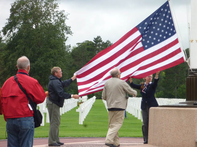 invited to help retire the colors at the American cemetery at Omaha Beach.